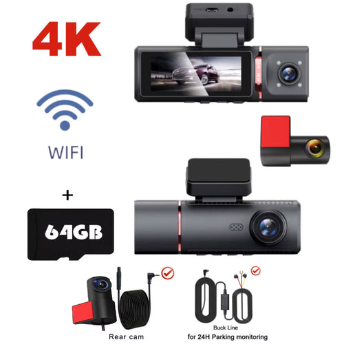 Caméra embarquée 3 voies 4K UHD avec GPS intégré – Vision Nocturne & Surveillance 24h/24